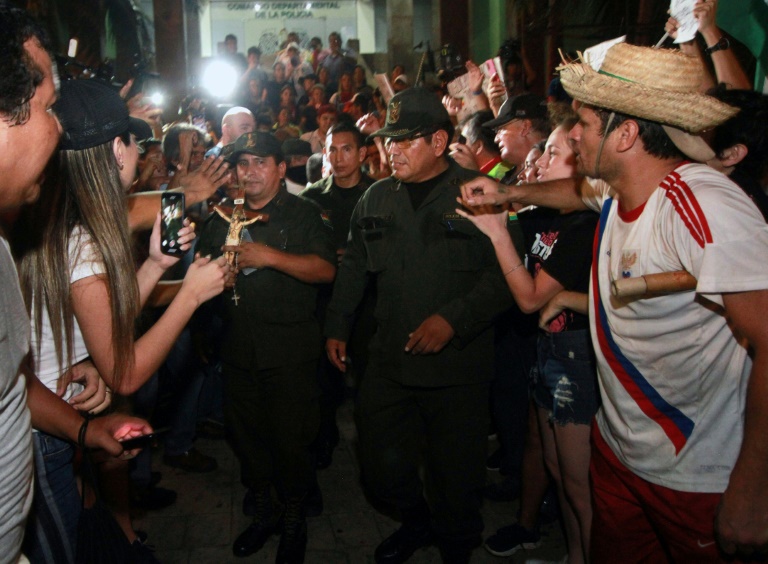 El líder regional Luis Fernando Camacho, erigido como el rostro más visible y radical de la oposición, agradeció a los agentes y pidió a “la familia militar” que cumpla su “compromiso con el pueblo boliviano”.