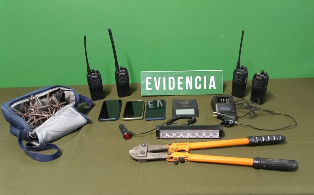 Los individuos se hallaban en posesión, de elementos para la comisión de delitos: cuatro equipos radiales, una baliza de color azul, un napoleón, un porta documentos de Carabineros de Chile, además de un cargador radial.