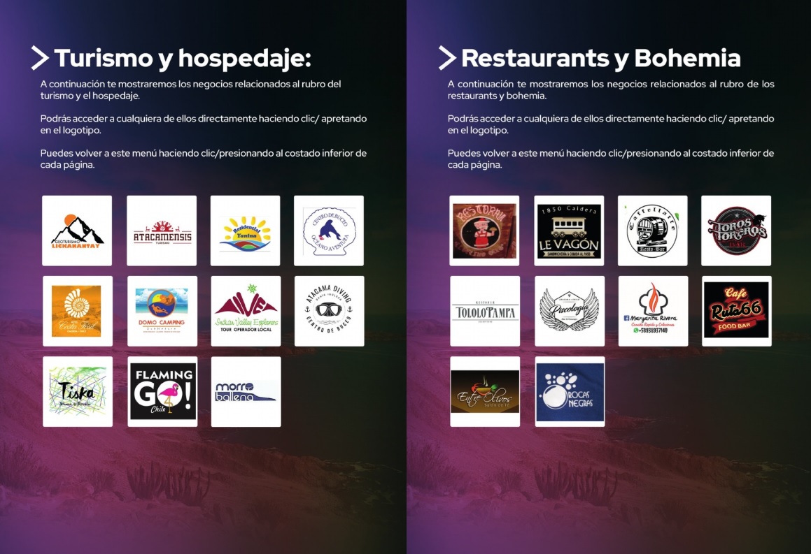 Desde Geoturismo Lickanatay también aseguran que la iniciativa de SERCOTEC es un aporte al emprendimiento turístico de la región: “Esto nos ayuda porque ahora todo es digital. Esperamos que el catálogo se siga haciendo porque no hemos sido los únicos beneficiados, sino que ha ayudado a todos los servicios y productos locales”.