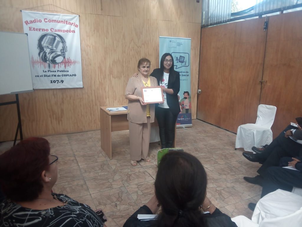 Además, recalcó el rol de los medios locales y comunitarios: “Hicimos el lanzamiento en una radio emblemática de la Región de Atacama, la Radio Eterno Campeón, una radio comunitaria, de larga trayectoria, agradecemos profundamente a su dueña María Eugenia, por habernos acogido y recibido en este lugar donde pudimos estar con los medios y capacitarlos en cuanto a los alcances del fondo de este año”