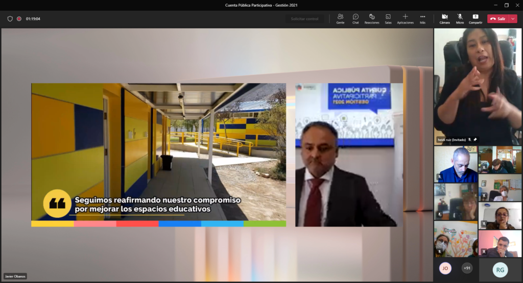 Con una gran participación de autoridades, directores, directoras, profesores y profesoras, asistentes de la educación y funcionarios, se llevó a cabo de manera remota, la presentación de la Cuenta Pública Participativa Gestión 2021 del Servicio Local de Educación Pública -SLEP- Huasco, liderada por el Director Ejecutivo, Javier Obanos Sandoval.
