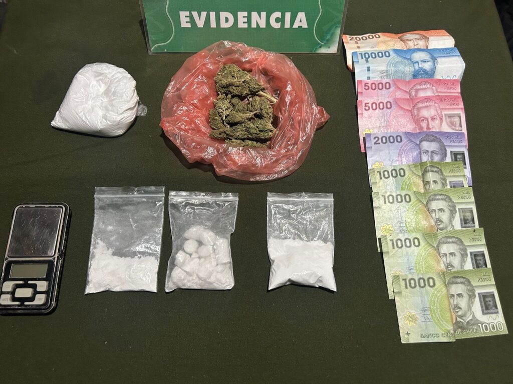 El detenido, de 19 años fue sorprendido en la plazoleta El Ancla, sector Alameda, con $46 mil en efectivo, además en posesión de 24 gramos de Marihuana, 78 gramos de Ketamina; además de una pesa digital y bolsas dosificadoras.