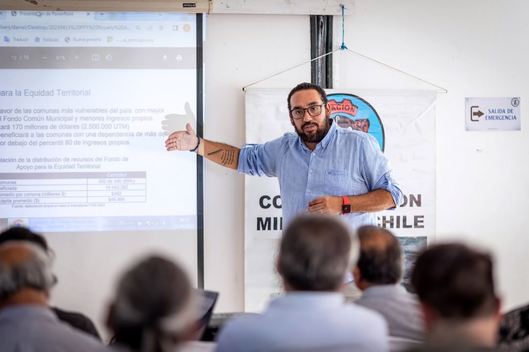 Este sábado, el subsecretario de Desarrollo Regional y Administrativo, Nicolás Cataldo Astorga participó en un encuentro organizado por la Confederación Minera de Chile, en la comuna de Vallenar. En la oportunidad expuso sobre el proyecto de ley de royalty a la gran minería del cobre y su componente territorial, relevando que “el 35% de los recursos recaudados se utilizarán en fondos de beneficio comunal y regional, cumpliendo compromisos del gobierno en materia de descentralización”.