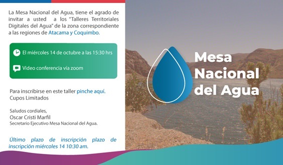 Excelente convocatoria tuvieron los dos primeros talleres territoriales y el 1er Webinar “Mesa Nacional del Agua: Participación Ciudadana”, encabezado por el Secretario Ejecutivo de la Mesa Nacional del Agua (MNA), el Director General de Aguas Oscar Cristi Marfil, quien indicó que el espíritu que anima esta iniciativa es “recoger conocimientos y experiencias en torno a nuestros recursos hídricos”.