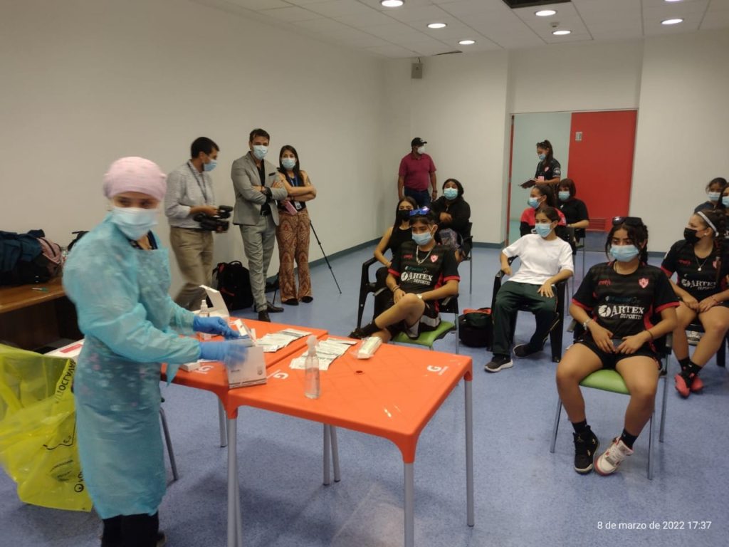 “Estamos en esta actividad – en conjunto con el director de Salud y el Servicio de Salud, en el cual siempre ellos nos han apoyado en todas las necesidades que hemos requerido, tanto para el primer equipo como para cadetes – y hoy día celebrando el Día de la Mujer, en el fútbol femenino. Se le están tomando los exámenes PCR a todas las jugadoras de la Rama de Fútbol Femenino, las cuales este miércoles van a presentadas ante toda nuestra hinchada, que son las Leonas que nos van a defender este año 2022 en las competencias que tengamos de la Segunda División del Fútbol Femenino correspondiente a la ANFP”, indicó el directivo.