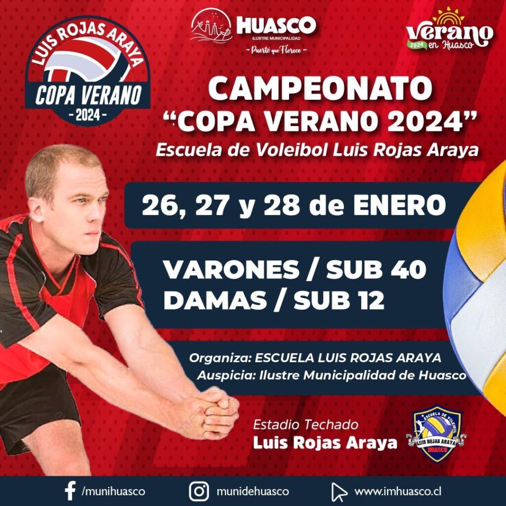 La organización corresponde a la Municipalidad de Huasco y a la Escuela de Voleibol ‘Luis Rojas Araya’, que invitan a la comunidad y veraneantes a asistir y presenciar de la competición deportiva.