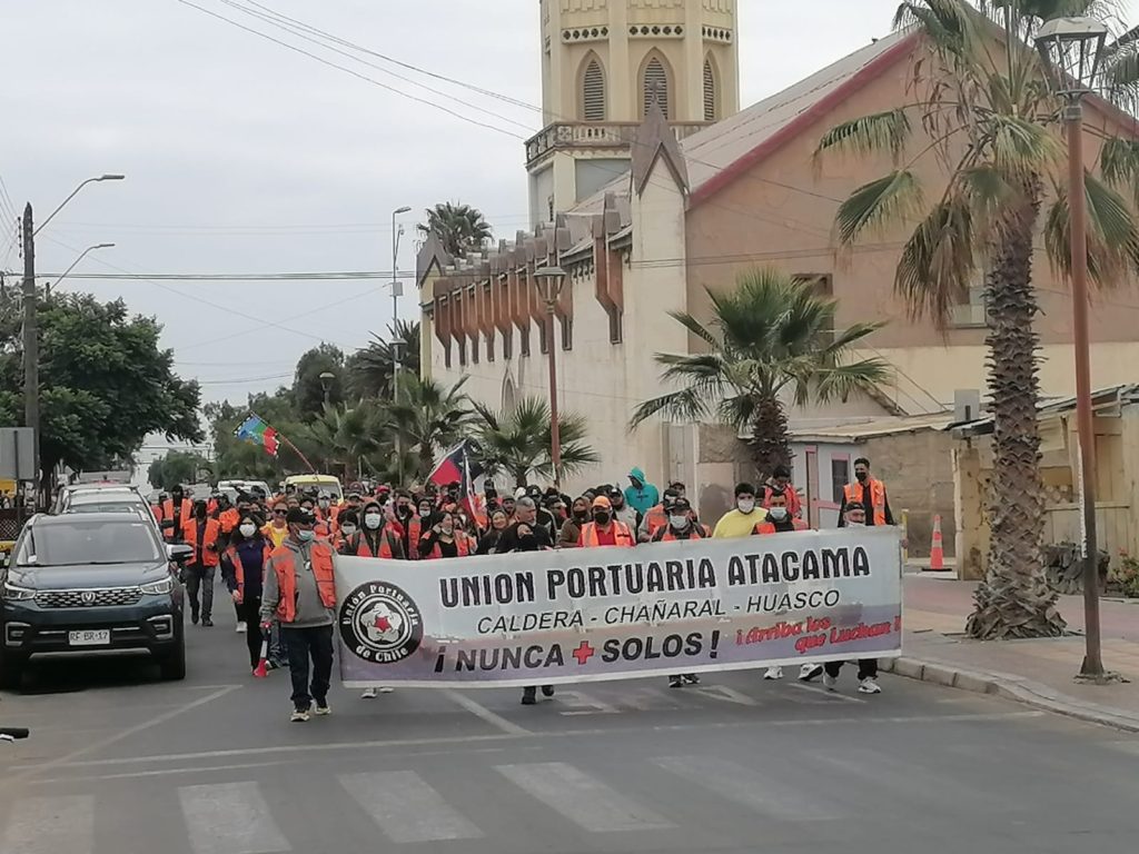 Trabajadores del sector portuario de los Sindicatos 1 y 2 se manifestaron pacíficamente por las calles céntricas del puerto para que sea aprobado el 5 retiro, además de las alzas de los insumos básicos y también del combustible. Los manifestantes salieron de la sede del Sindicato de los Portuarios en pleno centro de Caldera, para seguir en el sector de la plaza Condell para llegar a Batallón Atacama y enfilar nuevamente al centro del puerto y llegar nuevamente a la sede, ubicada en calle Edwards.