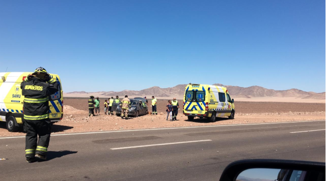 Concluida la labor de bomberos las personas rescatadas fueron evaluadas por el personal SAMU y raíz de sus lesiones se determinó el traslado hasta el Servicio de Urgencia del Hospital Regiomal para una mejor evaluación médica y conocer diagnóstico definitivo de sus lesiones. (Foto: Gentileza Atacama Noticias)