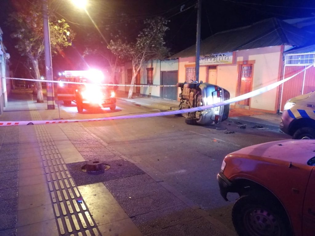 Alrededor de las 04:50 horas de ayer, en el sector de calle Serrano en la comuna de Vallenar, el conductor de un automóvil que tansitaba en dirección al poniente chocó contra una camioneta estacionada, producto del impacto el vehículo volcó a un costado de la vía.