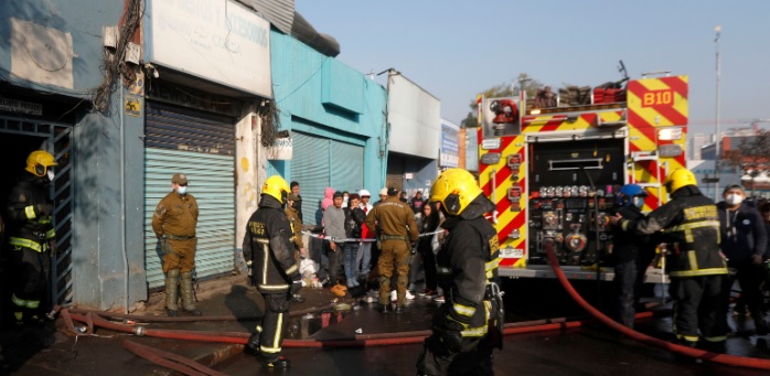 El jefe de servicios del Cuerpo de Bomberos de Santiago, Diego Velásquez, señaló temprano: “Faltando 12 minutos para las siete de la mañana se recibe la alarma acá en la calle 10 de Julio, esquina Santa Rosa, de fuego en una bodega. A la llegada de máquinas bomberiles se pudo apreciar un gran sector comprometido por el fuego. Este sector afectaba bodegas, locales comerciales y también algunas habitaciones. Había un sector que estaba habilitado como piezas subarrendadas, lo que lamentablemente deja un saldo de casi 50 personas afectadas en este incendio, además de los locales comerciales”.