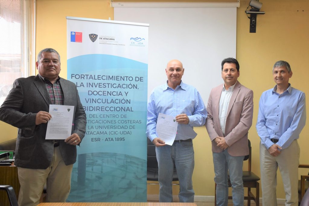 En el marco del Proyecto ATA 1895 de “Fortalecimiento de la Investigación, Docencia y Vinculación Bidireccional del Centro de Investigaciones Costeras de la Universidad de Atacama (CIC-UDA), Para el Desarrollo del Sector Pesquero y Acuícola del Borde Costero de la Región”, este Convenio de Colaboración, entre la Universidad de Atacama y Pesquera Bahía Caldera, el cual tendrá una duración de tres años, prorrogable automáticamente por el mismo período y cuya finalidad es impulsar y ejecutar programas y proyectos, en materia de formación continua de Capital Humano, Asesorías Técnicas, Investigación, Fomento Productivo y Tecnológico.