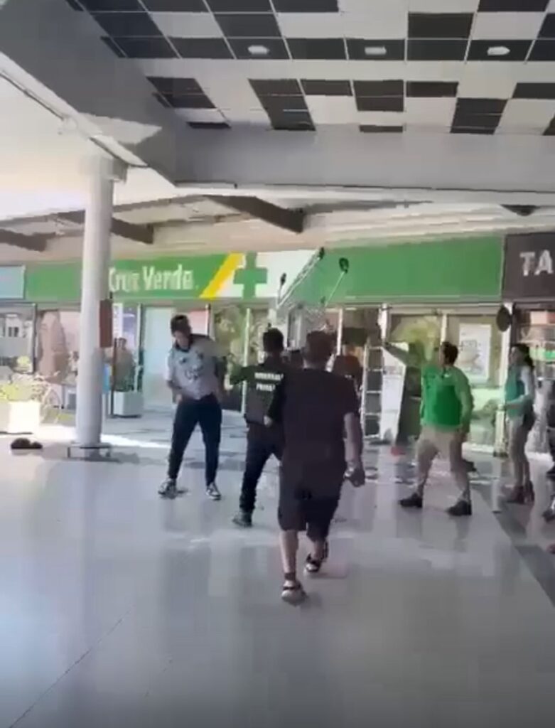 En las imágenes, que circularon rápidamente por diversas plataformas digitales, se observa a un grupo de jóvenes enfrentándose directamente con un guardia de seguridad del recinto, lanzando carros de supermercado a un joven guardia de seguridad y a otro funcionario que logra defender el ingreso del recinto de los sujetos que además, proferían fuertes insultos a ambos trabajadores en medio del estupor de los testigos, en un altercado ocurrido a plena luz del día y ante numerosos testigos que se encontraban en las inmediaciones. El registro, de pocos segundos, provocó inmediatas reacciones de usuarios que expresaron preocupación por el aumento de hechos de desorden y agresiones en espacios públicos concurridos.