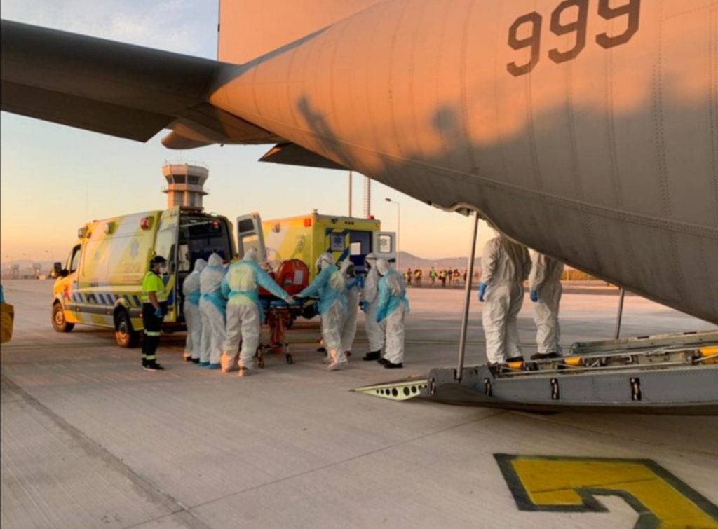 En un avión C-130 Hércules trajeron a los adultos adultos mayores en estado crítico y conectados a ventilación mecánica invasiva para ser internados en la Unidad de Cuidados Intensivos (UCI) del Hospital Regional de Copiapó, San José del Carmen.